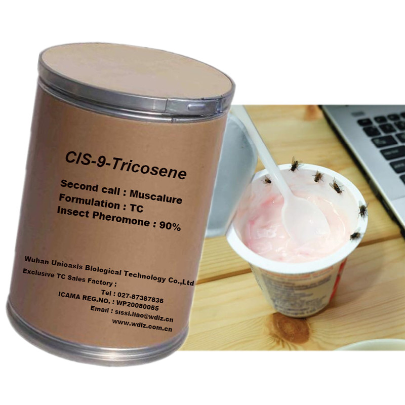 জেড-৯-ট্রিকোসেন একটি যৌন ফেরোমোন যা পুরুষদের আকৃষ্ট করার জন্য মহিলা ঘরের মাছি (মস্কো ডোমেস্টিকা) দ্বারা উত্পাদিত হয়। মৌমাছিদের মধ্যে, এটি হুইগল নাচের সময় প্রকাশিত যোগাযোগের ফেরোমোনগুলির মধ্যে একটি।এই পণ্যটি একটি পোকামাকড়ের ফেরোমোন যা আমাদের কোম্পানি রাসায়নিক সংশ্লেষণ পদ্ধতি ব্যবহার করে সংশ্লেষিত করেছে. এটি ছত্রাক এবং মাছিদের উপর একটি ভাল আকর্ষণীয় প্রভাব ফেলে। এটি কীটনাশকের সাথে একত্রে ব্যবহৃত হলে এটি কীটনাশকের কার্যকারিতা উন্নত করতে পারে।এই পণ্যটি শুধুমাত্র কীটনাশকগুলিতে আকর্ষণীয় হিসাবে ব্যবহৃত হয়.